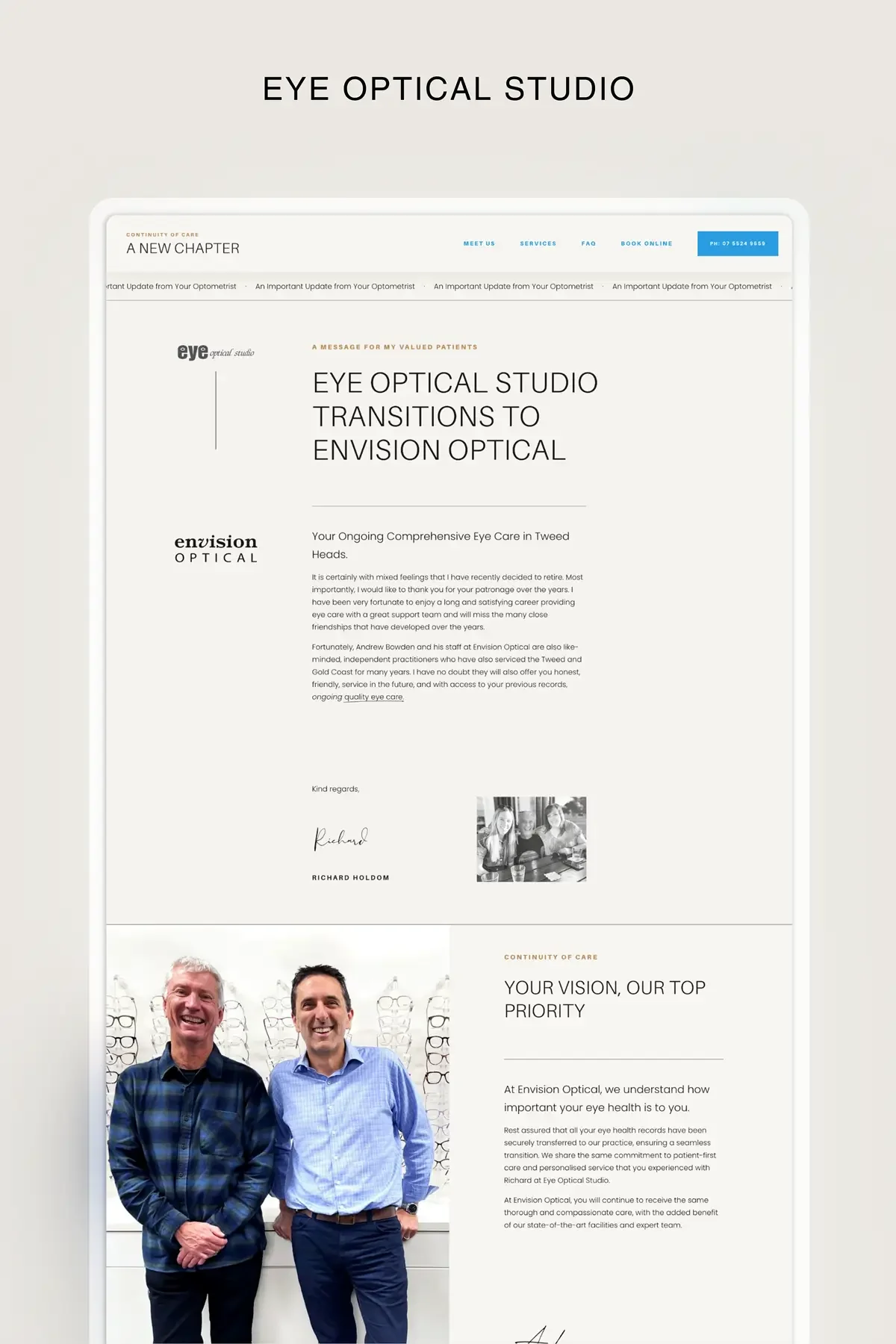 A Clean and Modern Squarespace Website for a Boutique Optometry Practice